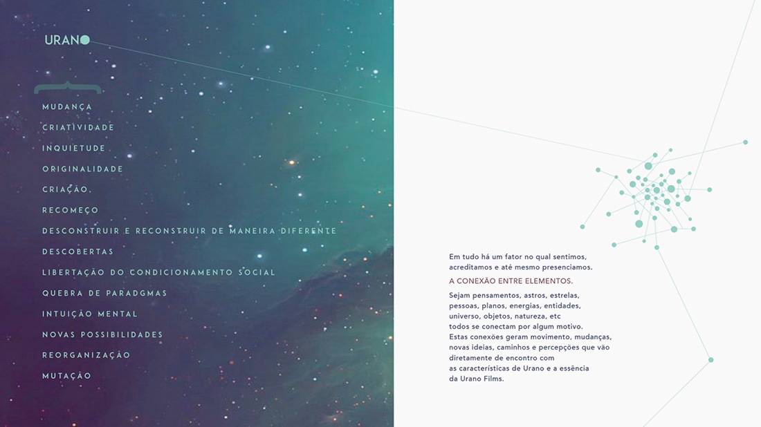 A criação da marca Urano Filmes surgiu com um grande desafio: construir uma marca que imprimisse um olhar em que as atitudes, pensamentos e decisões da produtora são pautadas diretamente pela astrologia. No início tudo pareceu desconexo, mas o resultado surpreendeu bastante. Confira este projeto de branding design.